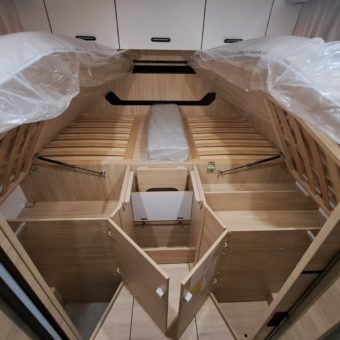 El sistema de doble tabique permite separar completamente la zona de día y la zona de noche, aportando intimidad y funcionalidad, especialmente en viajes en familia.