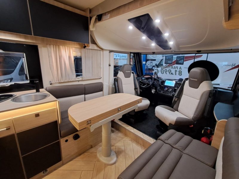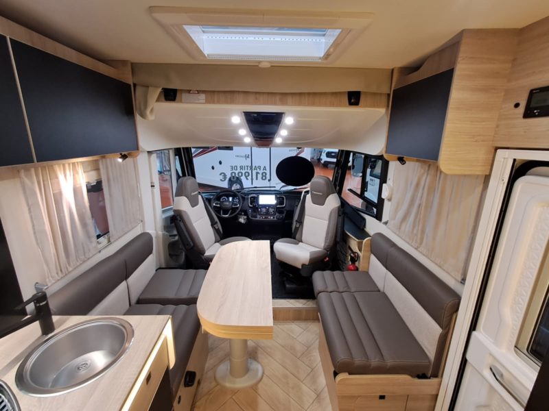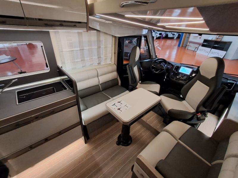 El resultat és una sensació de saló obert a la part davantera, amb grans parabrises panoràmics i una zona de menjador molt espaiosa. A més, la majoria d’integrals incorporen una cama basculant sobre la cabina, cosa que permet mantenir una distribució còmoda sense renunciar a places per dormir.