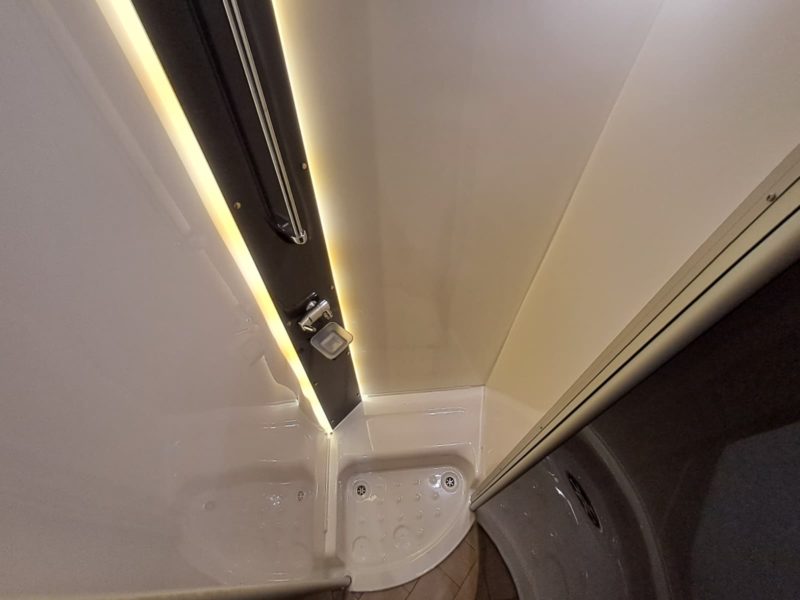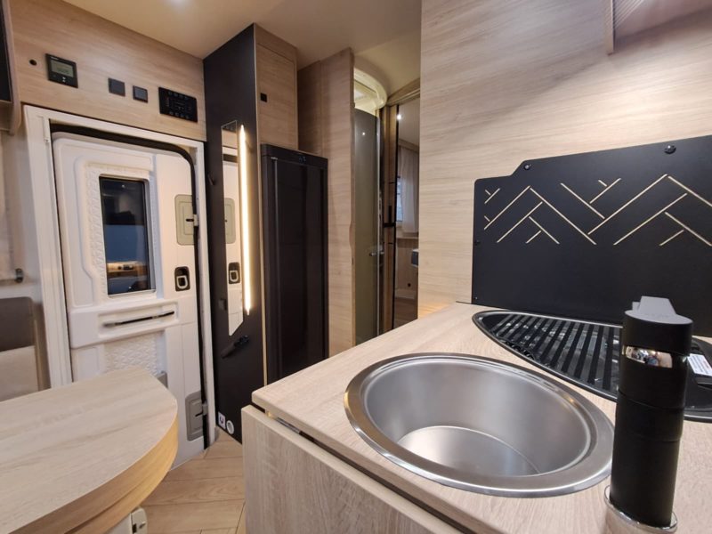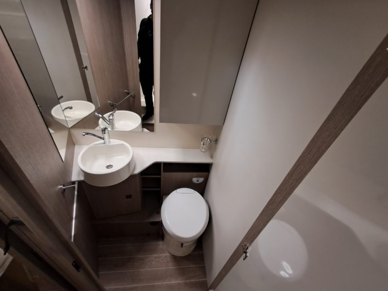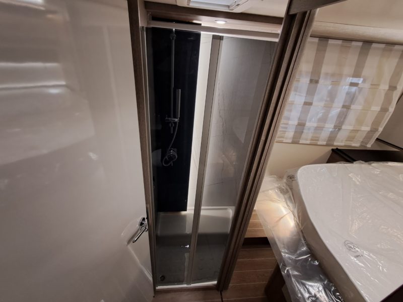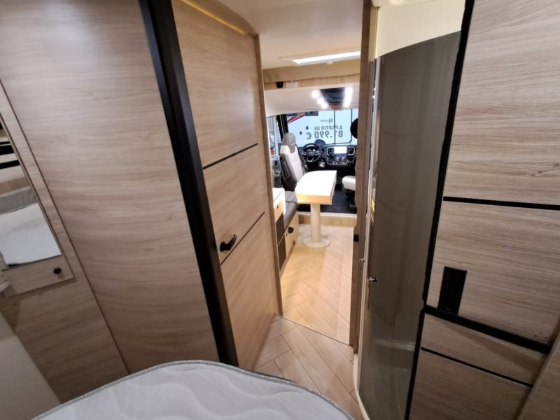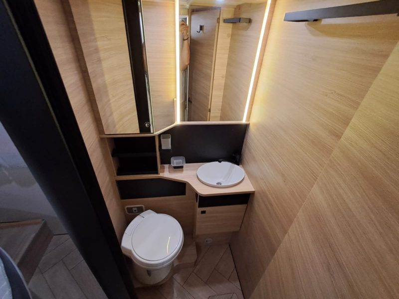 Un dels elements més interessants d’aquesta autocaravana és el seu bany amb doble envà, un sistema que permet separar completament el bany de la resta de l’habitatge, creant un espai molt més ampli i còmode per a l’ús diari.