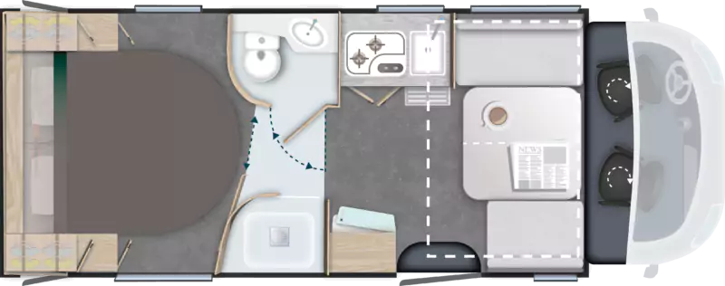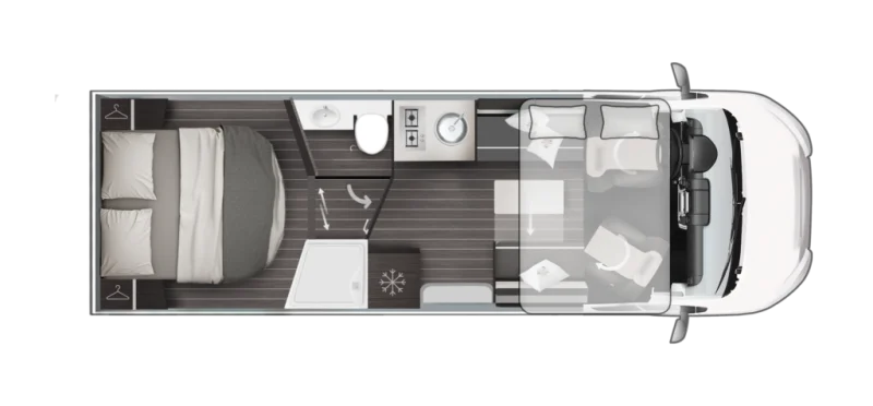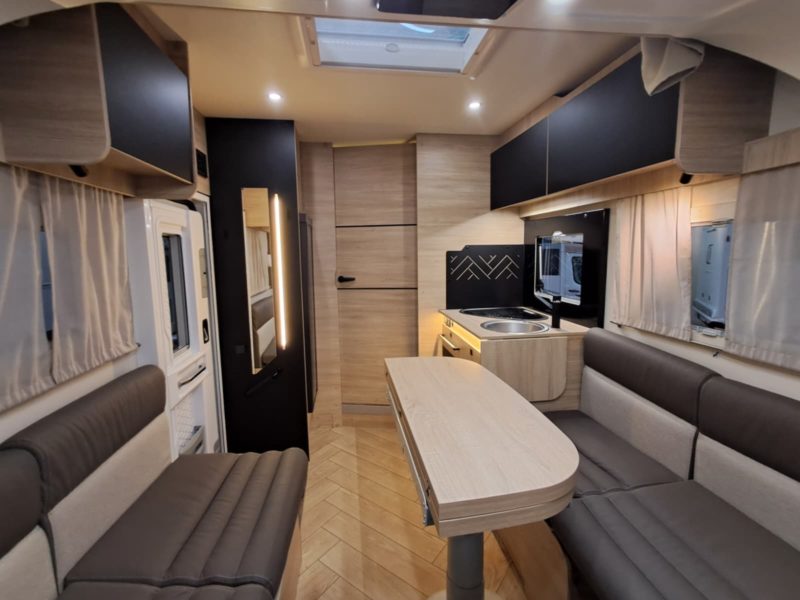 Amb 7,45 metres de longitud, aquesta integral ofereix una distribució molt equilibrada amb llit central posterior, bany i dutxa independents i un ampli saló face to face, cosa que permet gaudir d’una zona de dia molt espaiosa i lluminosa.