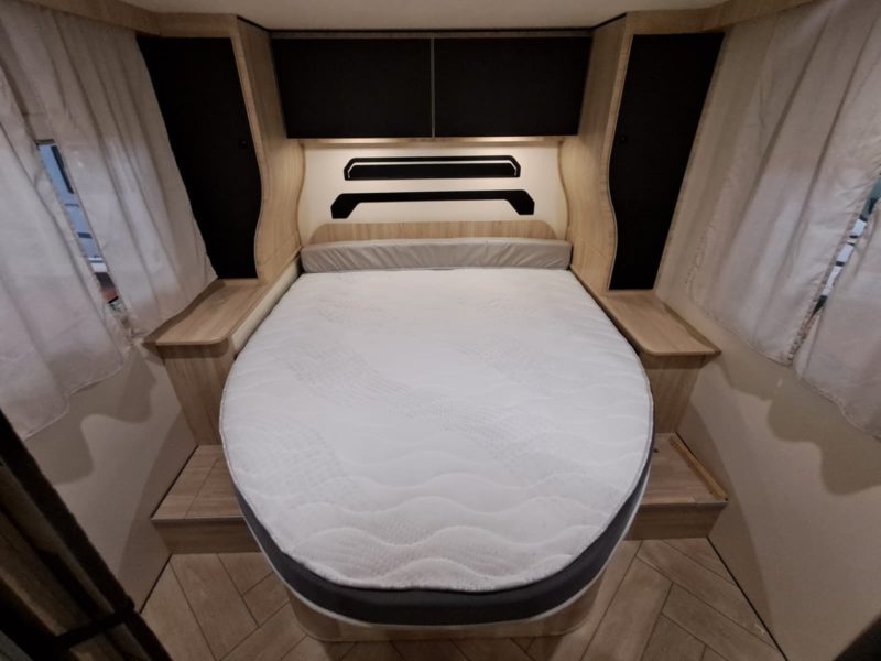 Amb 7,47 metres de longitud, aquest model ofereix una distribució molt equilibrada amb llit central tipus illa de 160 cm d’amplada, una de les mides més còmodes dins del segment.